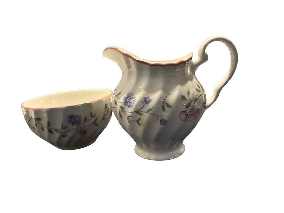 Lilac Flowers. Vintage china milk jug & sugar bowl