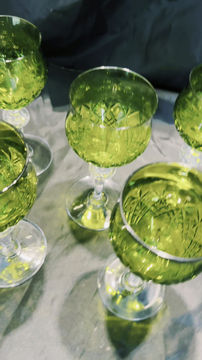 Set 10 Vintage Crystal Wine Goblet Glasses. Stemmed